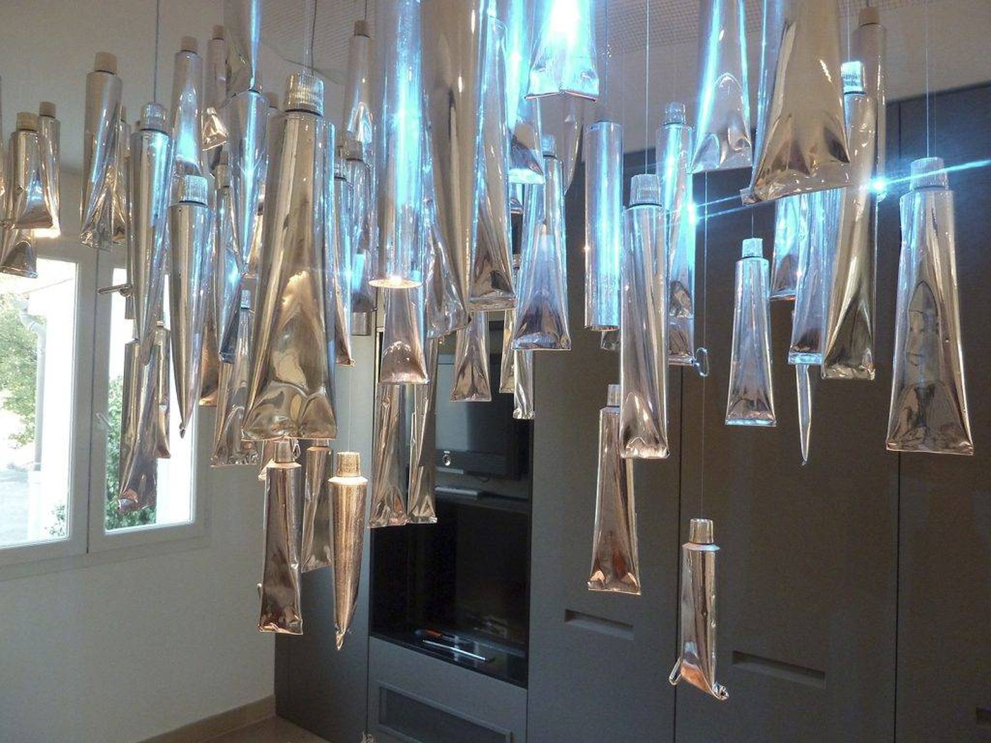 Un mur de colonne à porte escamotable, intégrant cheminée à insert et TV vient dissimuler l’accès à la buanderie. La création d’un coin salon avec cheminée donne à cette cuisine, sur mesure et résolument contemporaine, toute sa singularité.