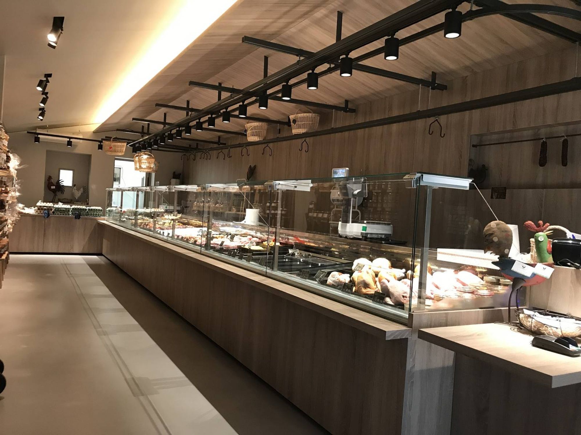 L’agencement et la décoration intérieure de la surface de vente et du laboratoire de préparation ont été étudiés pour transcrire une atmosphère artisanale « comme à la ferme » revisitée dans un style contemporain et moderne.