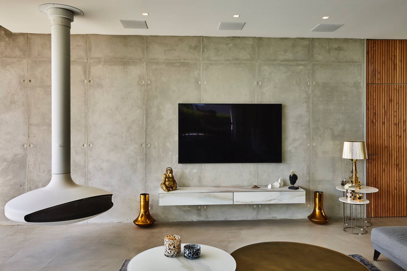 Le projet se distingue par l'utilisation du béton brut, conférant à la villa une esthétique robuste et intemporelle. L’architecture joue sur des volumes intérieurs et extérieurs en bois massif de pin Douglas, créant une harmonie subtile entre la minéralité de la base et la chaleur naturelle du bois.