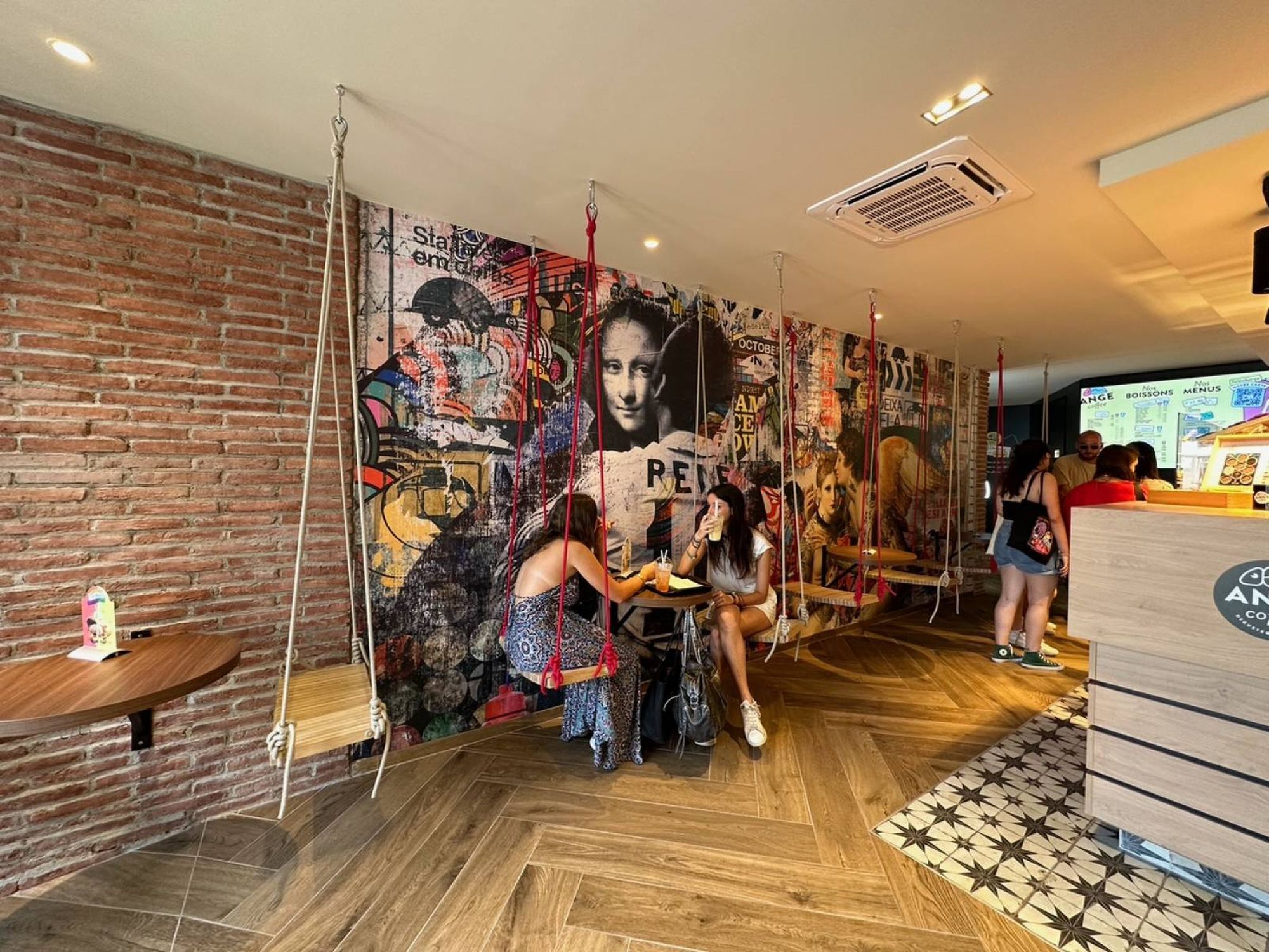 Notre équipe d'architectes a travaillé afin de créer un environnement accueillant et inspirant, destiné à attirer une clientèle plus jeune et dynamique. Ce café restaurant comporte plusieurs zones tels que des espaces d'assises traditionnelles, d'assises suspendues ainsi qu'un coin repas original avec des balançoires créant une atmosphère vibrante des cafés urbains tout en conservant une identité propre à l'enseigne Ange.