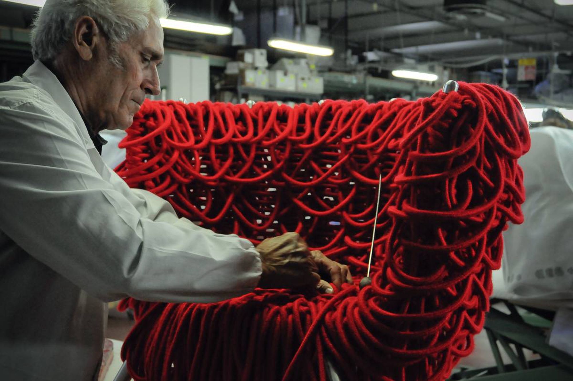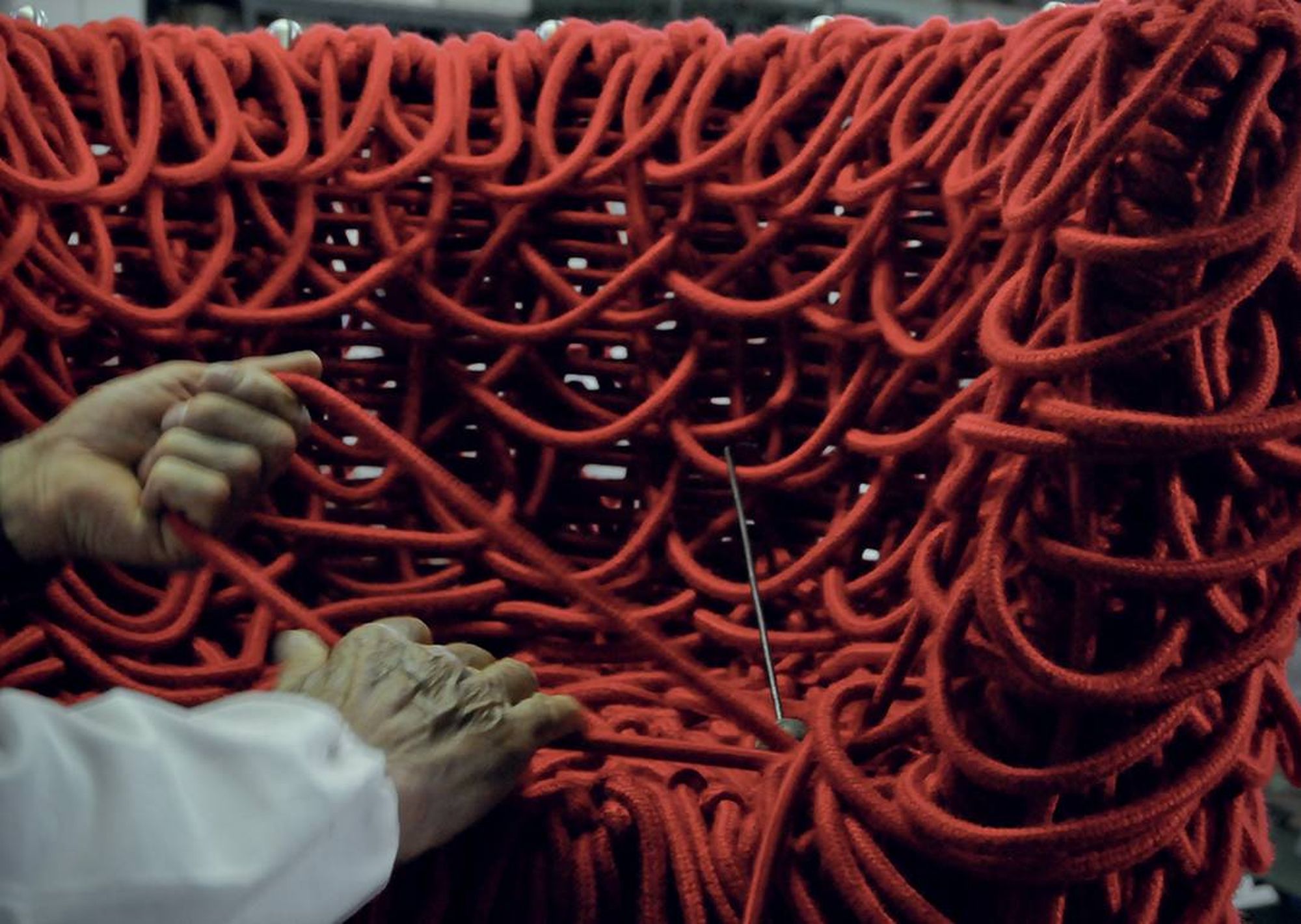 Fauteuil Vermelha de Fernando et Humberto Campana pour Edra. Composé de 500 mètres de corde spéciale ce fauteuil vous séduira par sa confection. Il a fallu une semaine de travail avec un haut degré de spécialisation.
